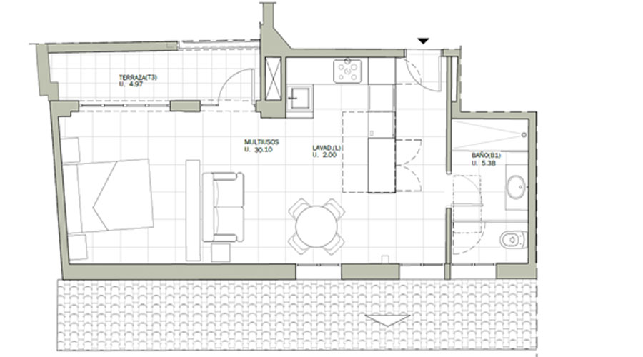 1 dormitorio y 1 baño