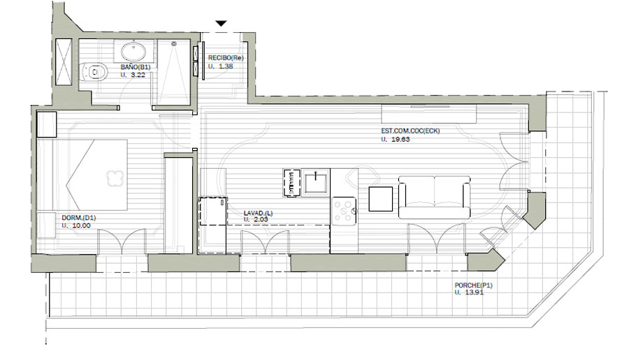1 dormitorio y 1 baño